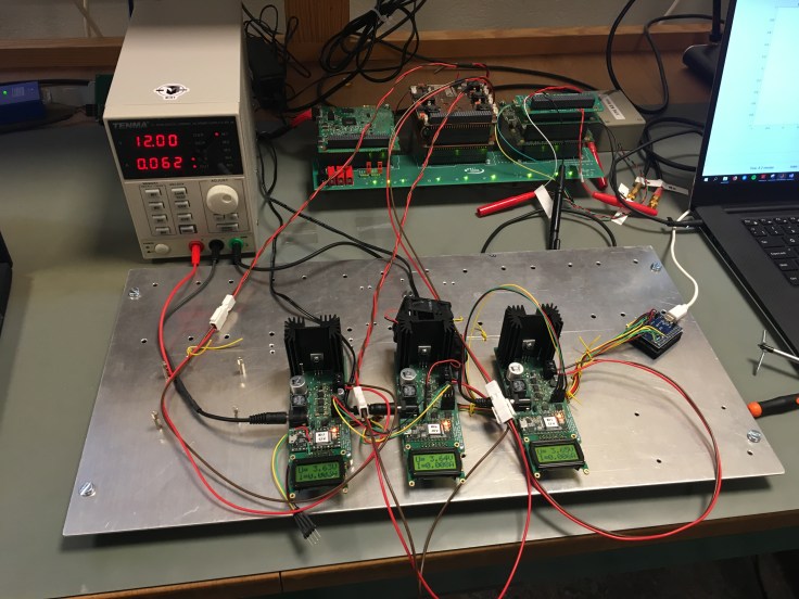 In January 2019 the first full-orbit power simulation using the Solar Panel Simulator (SPS) developed by student Gustav Pettersson was conducted. The SPS mimics the behavior of the solar panels as if they were in orbit and takes into account orbital position, solar illumination, mutual shadowing of solar panels and the Earth’s albedo. The SPS also mimics the layout of solar cells and the resulting I-V-curve of each panel. The simulator’s hardware part is connected to the three inputs of the Electrical Power System (in our case the GOMspace P31us and the battery pack BP4). M.Sc. thesis student Stefano Barra conducted the test.