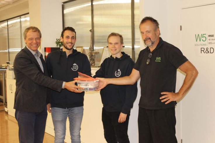 On Thursday 3 September 2020 the MIST project took delivery of the flight harness for MIST. The box may look insignificant but the assembly of this critical subsystem needs to be done with expertise. The MIST project is therefore very grateful to W5 Solutions and their Solna facility for doing this work as a contribution to the project. At the delivery KTH Space Center director and astronaut Christer Fuglesang (left), students Filippo Pozzi and Topias Tyystjärvi as well as W5 Solutions product manager Åke Söderlund attended.