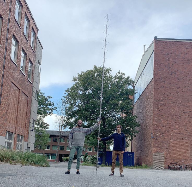 On 5 September 2020 students Sergio Peñalba and Joan Mitjans i Blasco assembled the very long UHF receive antenna for the MIST ground station. It is this long (approx. 5 m) because the link budget dictates it. The downlink does not use forward error correction – therefore a lot of gain is needed on the ground.